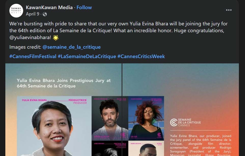 - Yulia Evina Bhara is a Critics’ Week jury member in 2025.