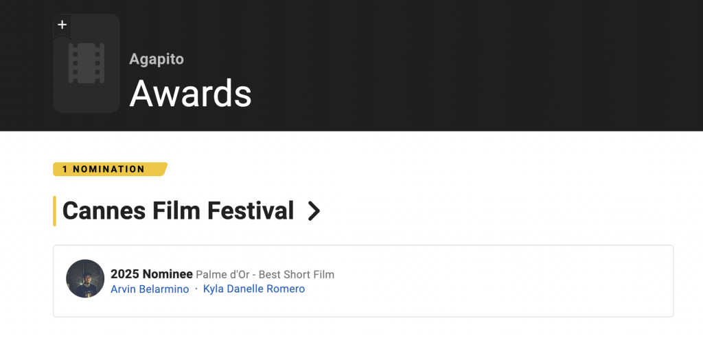 https://cinemadedemain.festival-cannes.com/en/2025/focus-copro-2025-three-projects-selected-by-pop-up-film-residency-ecam-industria-hff-munchen/ Arvin Belarmino's writer and co-director for Agapito.