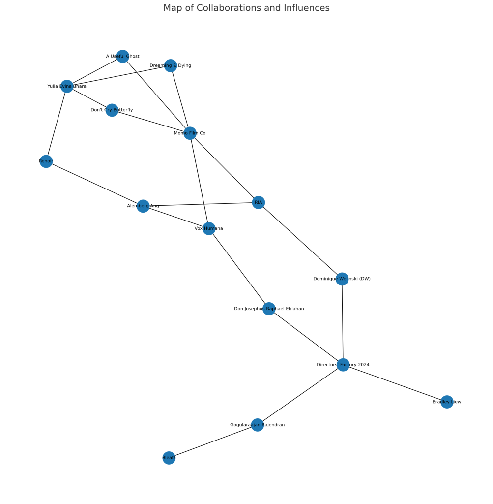 - Directors’ Factory 2024 connects a separate cluster—Rajendran, Eblahan, Liew, and DW—yet still loops back to Momo via other films.