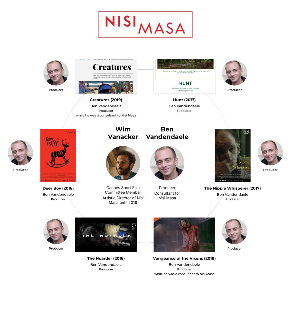 Any credible professional in the film industry would recognize that the selection of a film produced by a committee member for festival participation constitutes an undeniable conflict of interest that should have never taken place. We again remind our reader that while Cannes selects only 8-10 short films per year, they receive between 7000 to 10,000 submissions. NISI MASA, too, received dozens of submissions each year. To assume that the above detailed narrative is some kind of a coincidence is preposterous. (If you believe that it is a coincidence, please contact us, we have a brand new bridge to sell you)