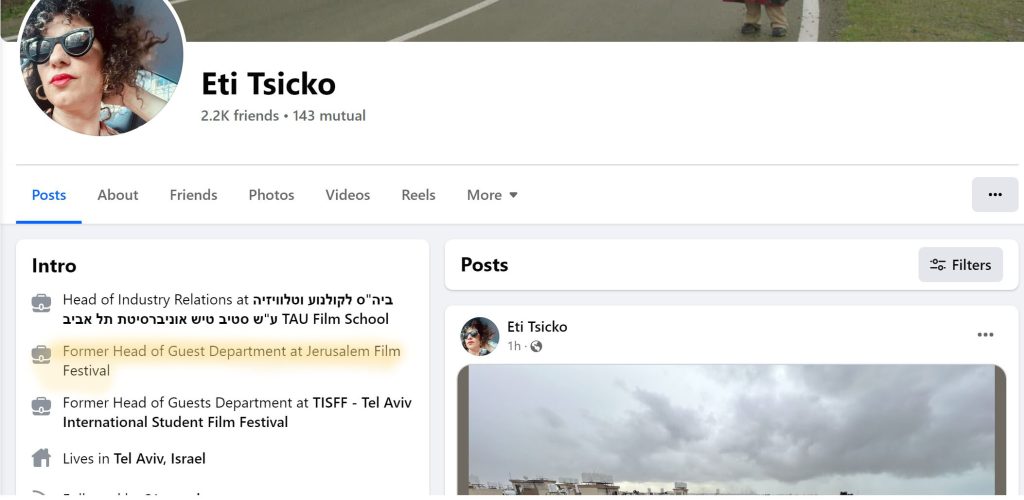 In the example below, also sent by readers of the site, a former employee of the Jerusalem Film Festival, then headed by the current head of the Israeli Film Fund Noa Regev, had both received funding for a short film and then had it screened in the festival where she was employed. While not illegal in any way, this is simply another example of how insular the Israeli film industry is and why newcomers find it so difficult to get their films made or screened, when employees, friends or family take up most of the available opportunities. The two following screenshots are the very definition of a “revolving door.”