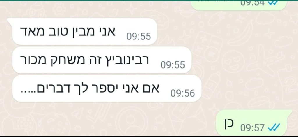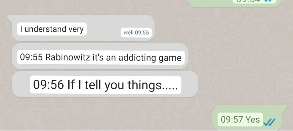 I understand perfectly well. Rabinovich is a rigged game. If I could only tell you the whole truth…..”