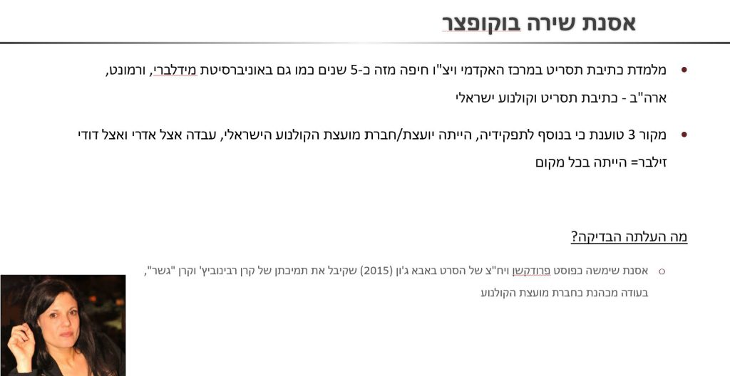 [64] https://www.facebook.com/TelAvivUniversityFilmTVSchool/posts/2354090558010267/