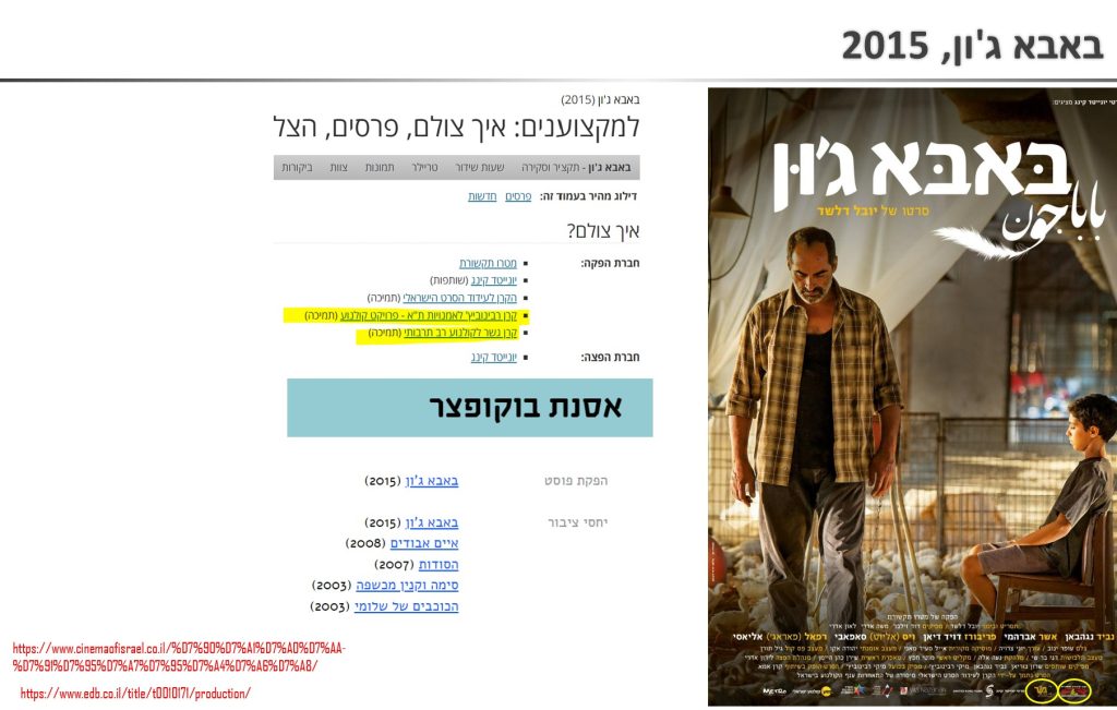 | The Israeli Film Fund | 2015 | July | Independent | ||