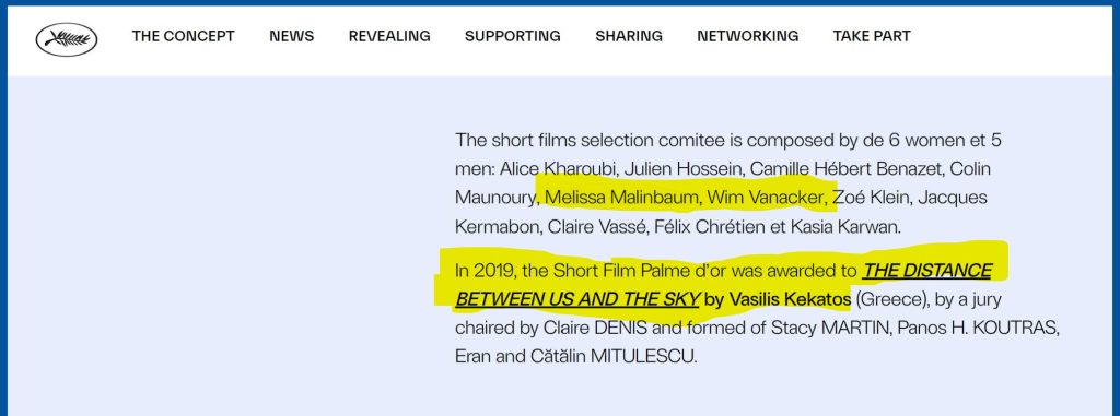 Evidence suggests a conflict of interest marred the 2019 Cannes Film Festival’s Official Selection for Short Films, and the award itself. The Palme d’Or went to the Greek short film ‘The Distance Between Us and the Sky,’ directed by Vasilis Kekatos, produced by Eleni Kossyfidou and French producer Guillaume Dreyfus.